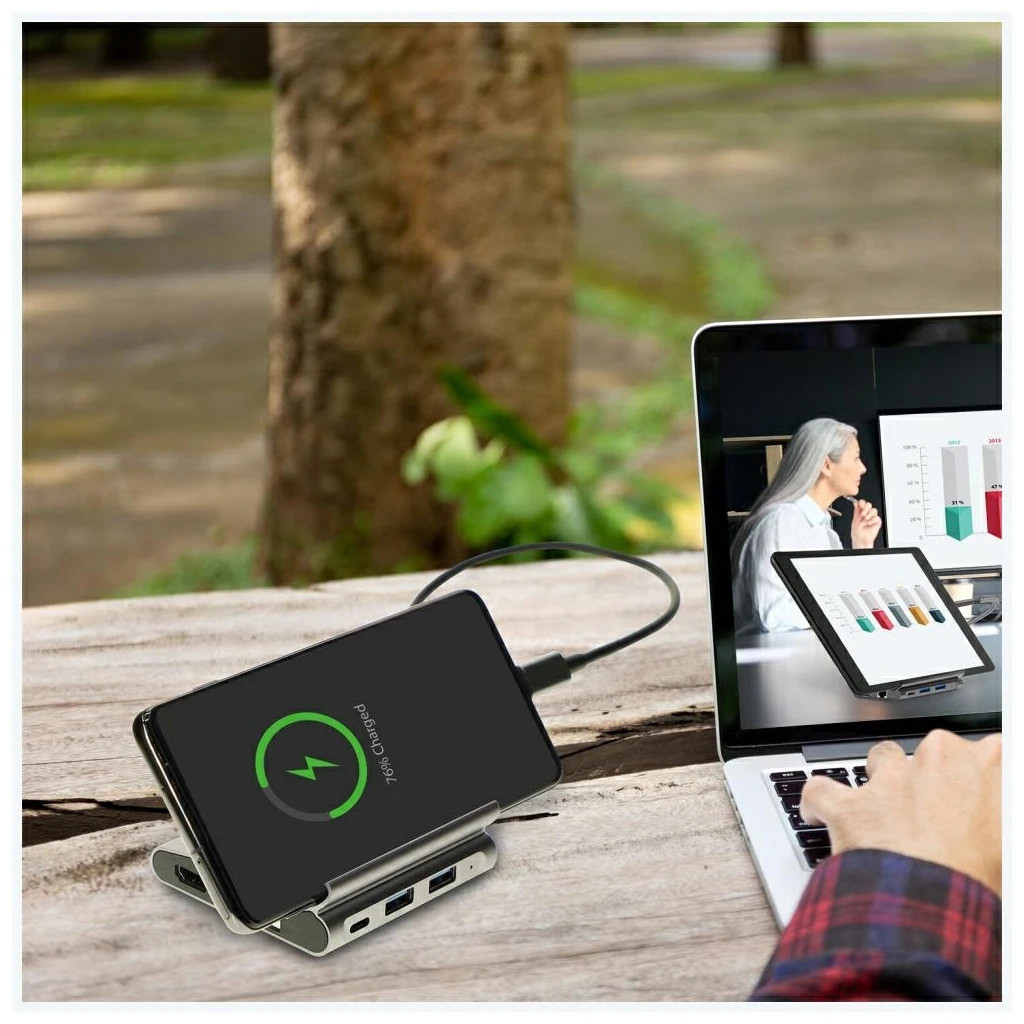 Ismerje meg a 7 az 1-ben Hub Universal Tablet és Telefon Tartó + DeX-Mode eszközt – az ideális megoldást, ha tablettel vagy okostelefonnal dolgozna, de mégis egy teljes értékű számítógépes munkaállomá..