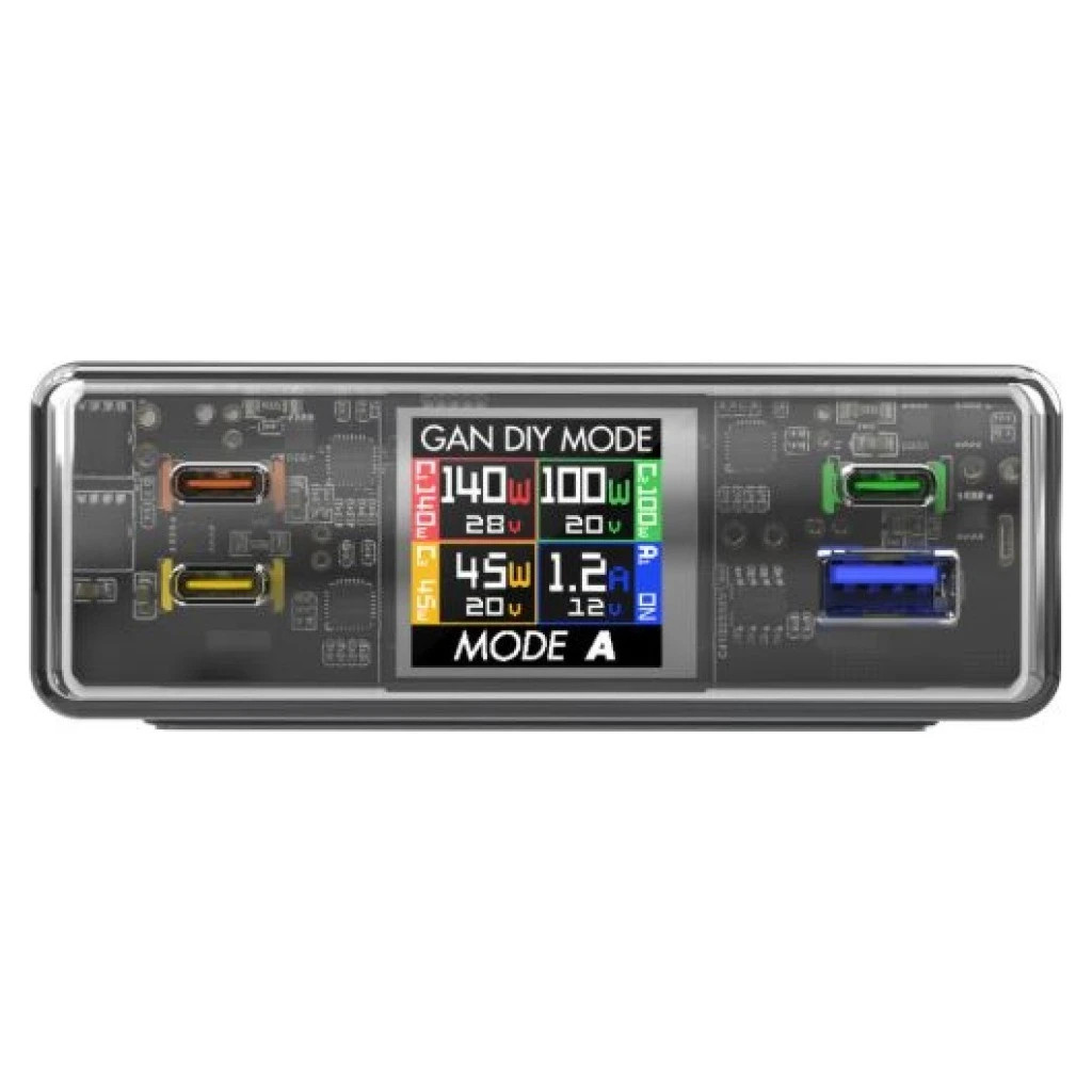 • Mód C (140 W + 75 W + 65 W + 20 W): Ideális gaming laptopokhoz, munkaállomásokhoz, prémium powerbankokhoz, drónokhoz, kamerákhoz és gimbalokhoz.