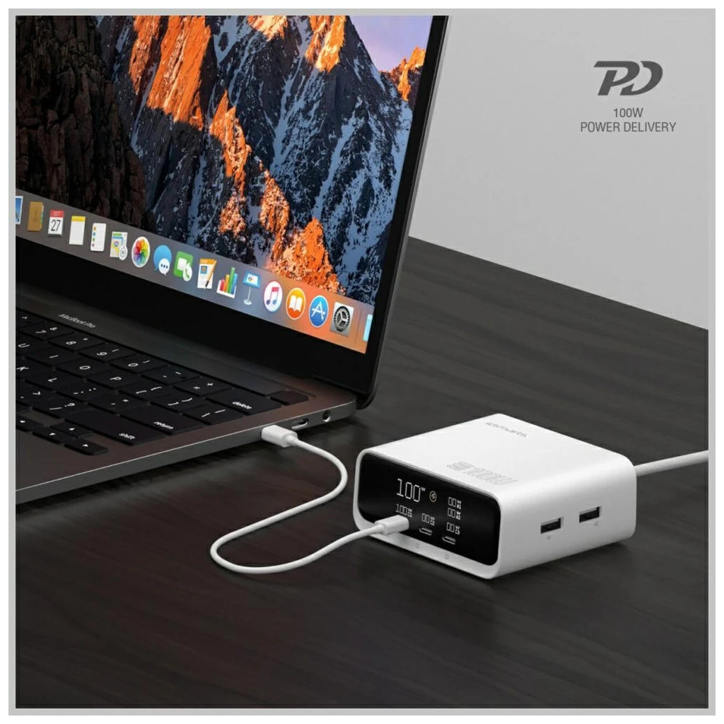 • Több port, több lehetőség: 3× USB-C port (PD 3.0) a laptopok, tabletek és okostelefonok gyors töltéséért, valamint 2× USB-A port (QC 3.0) villámgyors energiafeltöltéséért.