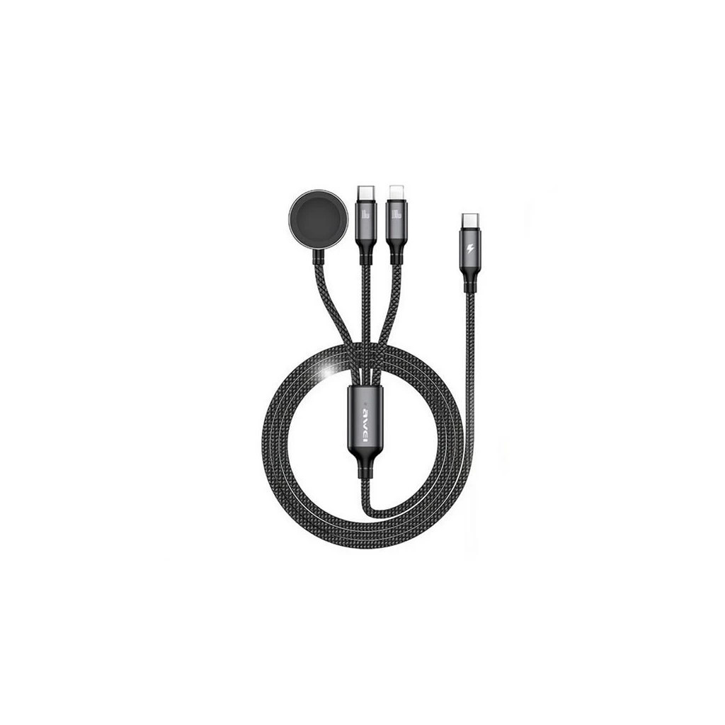 Awei töltőkábel 3in1 (Type-C - lightning/Type-C, Apple Watch töltő, 100W, wireless, gyorstöltő, 120cm) FEKETE (W23_B)