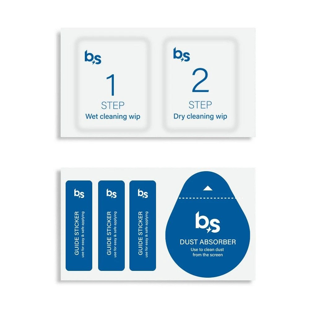1. Tisztítsd meg a kijelzőt a zsírtalanító kendővel, majd távolítsd el az apró port a por-eltávolító matricával.