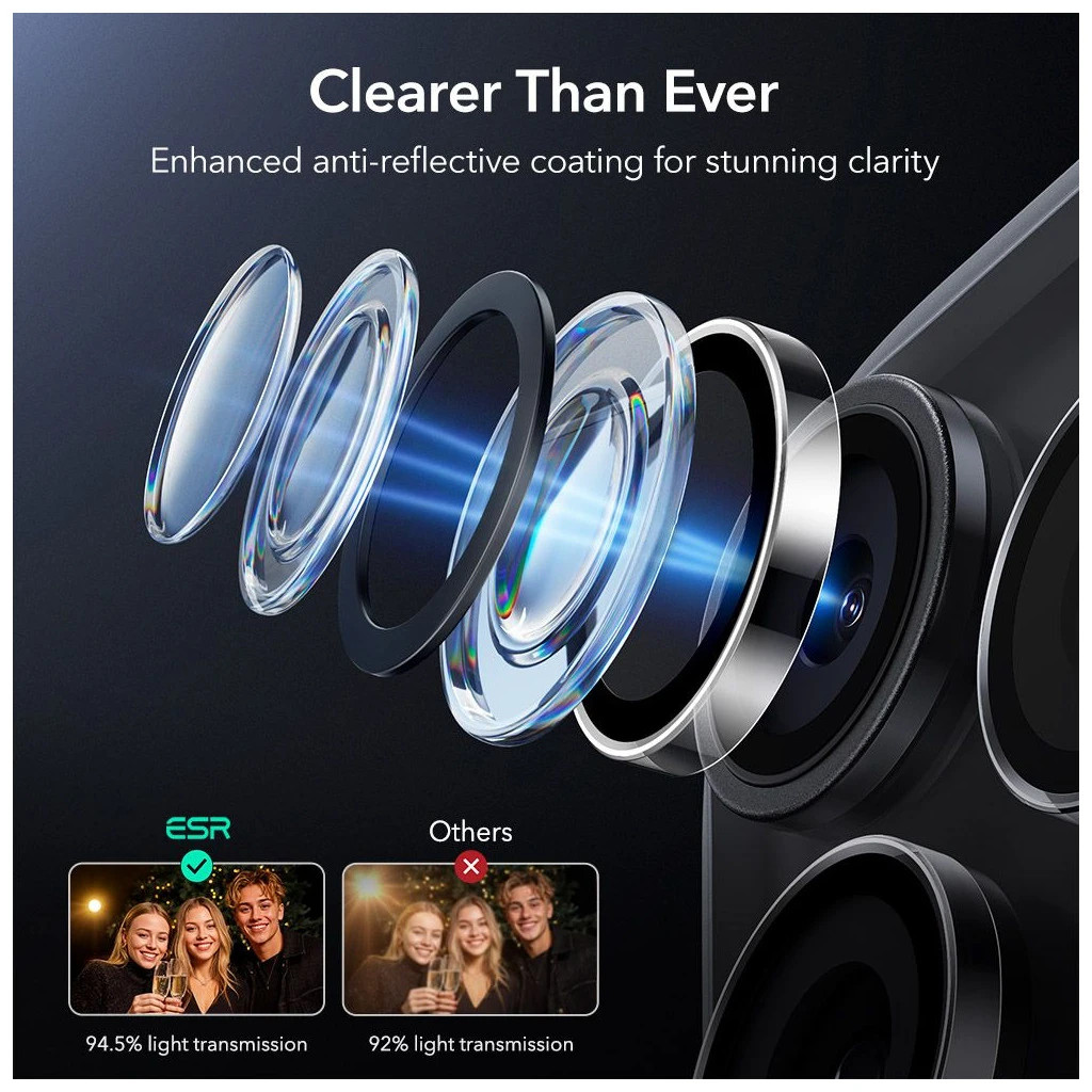 ESR ARMORITE kameravédő iPhone 14 Pro / Max, iPhone 15 Pro / Max, iPhone 16 Pro / Max, iPhone 17 Pro / Max készülékhez, átlátszó
