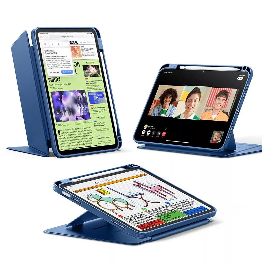Az ESR Flip Case egyik legnagyobb előnye a sokoldalúsága: könnyedén átalakítható állvánnyá, amely állítható dőlésszöggel kínál optimális megoldást íráshoz, filmnézéshez, videokonferenciákhoz vagy akár rajzoláshoz. Az integrált Apple Pencil tartó nem csupán tárolási lehetőséget nyújt, hanem támogatja a mágneses töltést is, így a toll mindig készen áll a használatra.