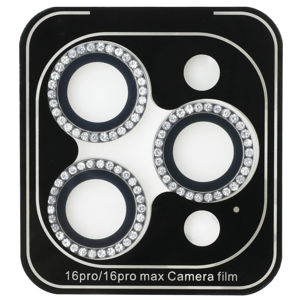 Készlet 2-in-1 Guess BP Rhinestone kijelző- és kamera lencse üvegfólia iPhone 16 Pro Max készülékhez ezüst