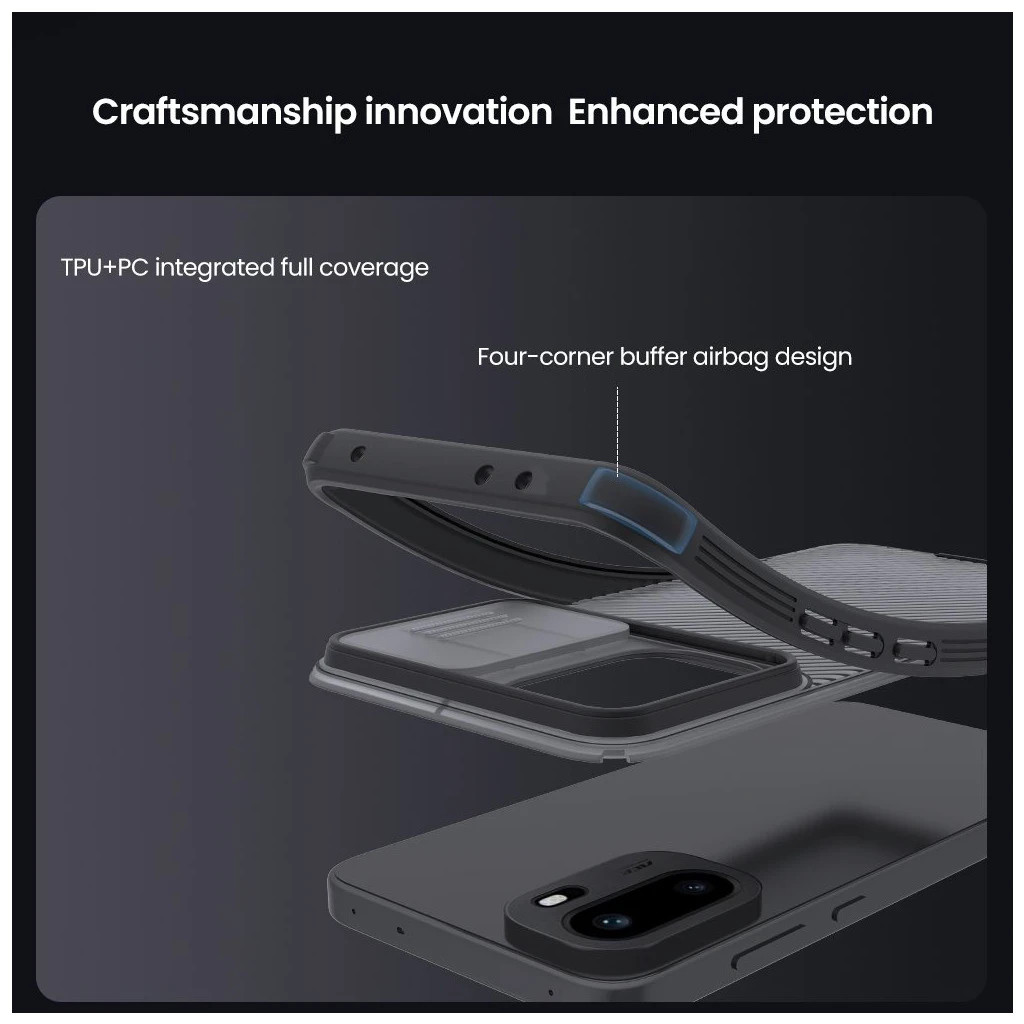 Fedezd fel a Nillkin CamShield PRO telefon­tokot, amely a modern felhasználók elvárásai szerint kínál stílusos, mégis robusztus védelmet! A klasszikus CamShield továbbfejlesztett, kettős anyagú konstrukciója nemcsak esztétikus, hanem hosszú távon is megőrzi az elegáns megjelenést – ujjlenyomat- és zsír­maradék-mentesen.
