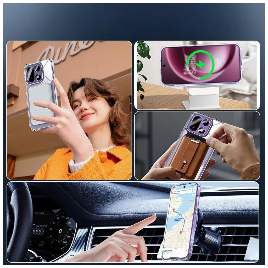 • Védelem minden részletre: A kicsit megemelt kialakítás a kamera és kijelző körül megakadályozza, hogy a telefon közvetlenül érintkezzen a lapos felületekkel, így csökkentve a karcolódások kockázatát.