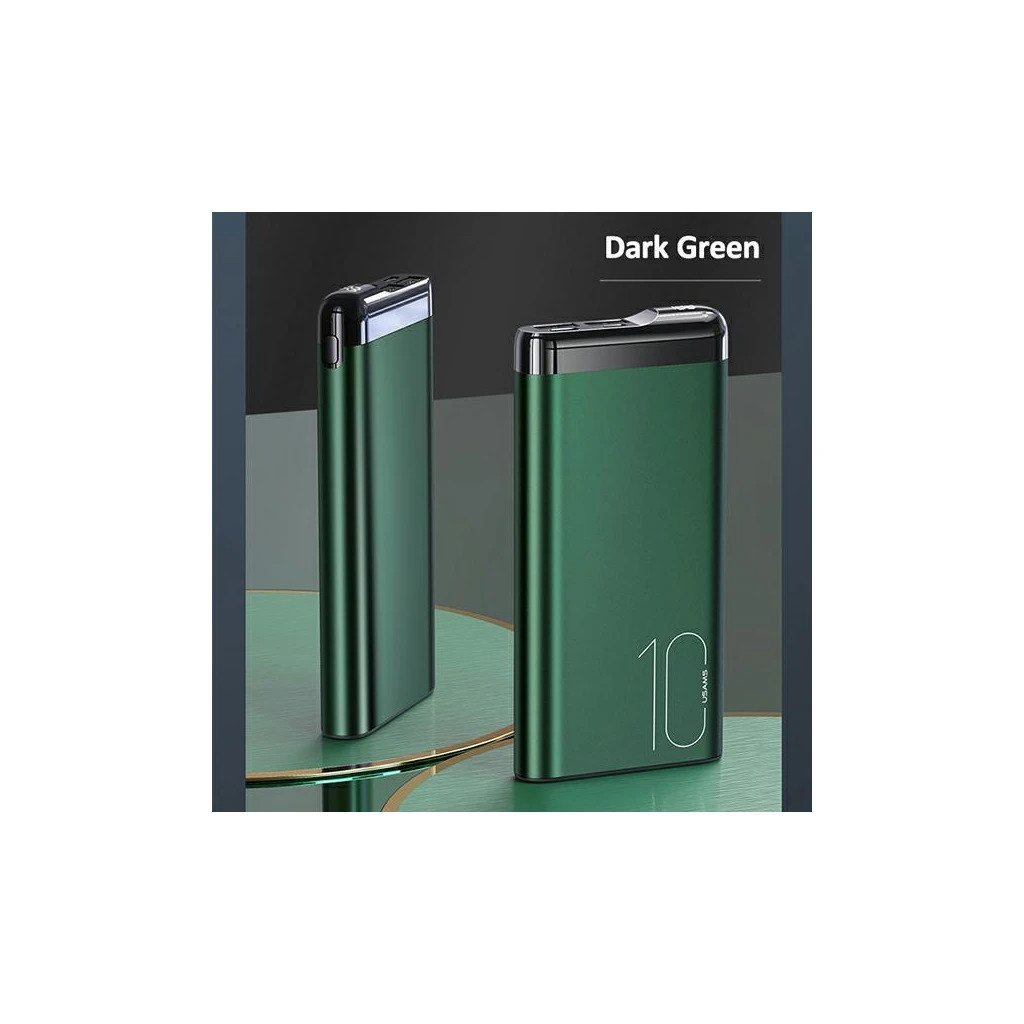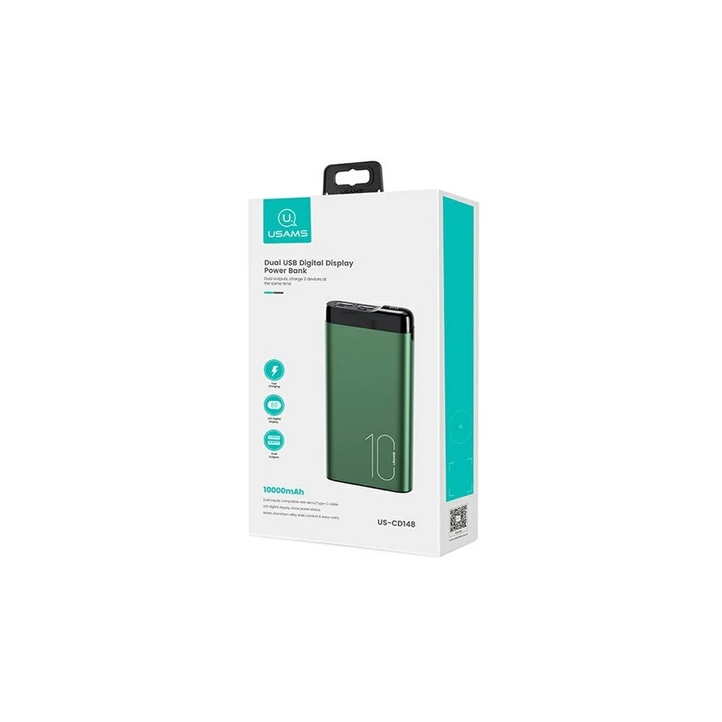 USAMS Hordozható töltő PB55 10000mAh 2xUSB LED display 10KCD14802 (US-CD148) alumínium zöld