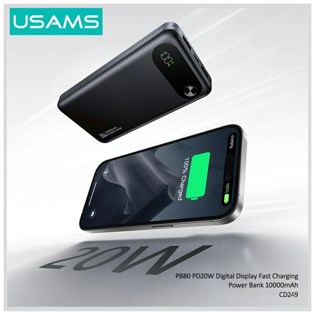Fedezd fel a USAMS PB80 PD20W 10000 mAh Power Bank előnyeit, amely a modern utazók, üzletemberek és mindennapos használók számára kínál megoldást a mobil eszközök gyors és hatékony töltésére! Ez a kom..