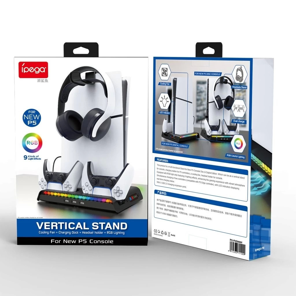 Fedezd fel az iPega P5S006 multifunkcionális töltőállvány előnyeit, mely kifejezetten a PlayStation 5 Slim konzolok számára készült, és a legmagasabb szintű kényelmet, valamint korszerű funkciókat kínál! Ez az állvány nem csupán egy praktikus tartó, hanem egy igazi multifunkcionális segítőtárs a hosszú játékélmények alatt, hiszen: