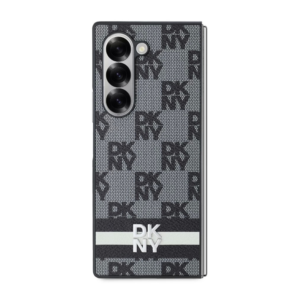 DKNY PU Leather Checkered Pattern and Stripe tok Samsung Galaxy Z Fold 6 készülékhez fekete