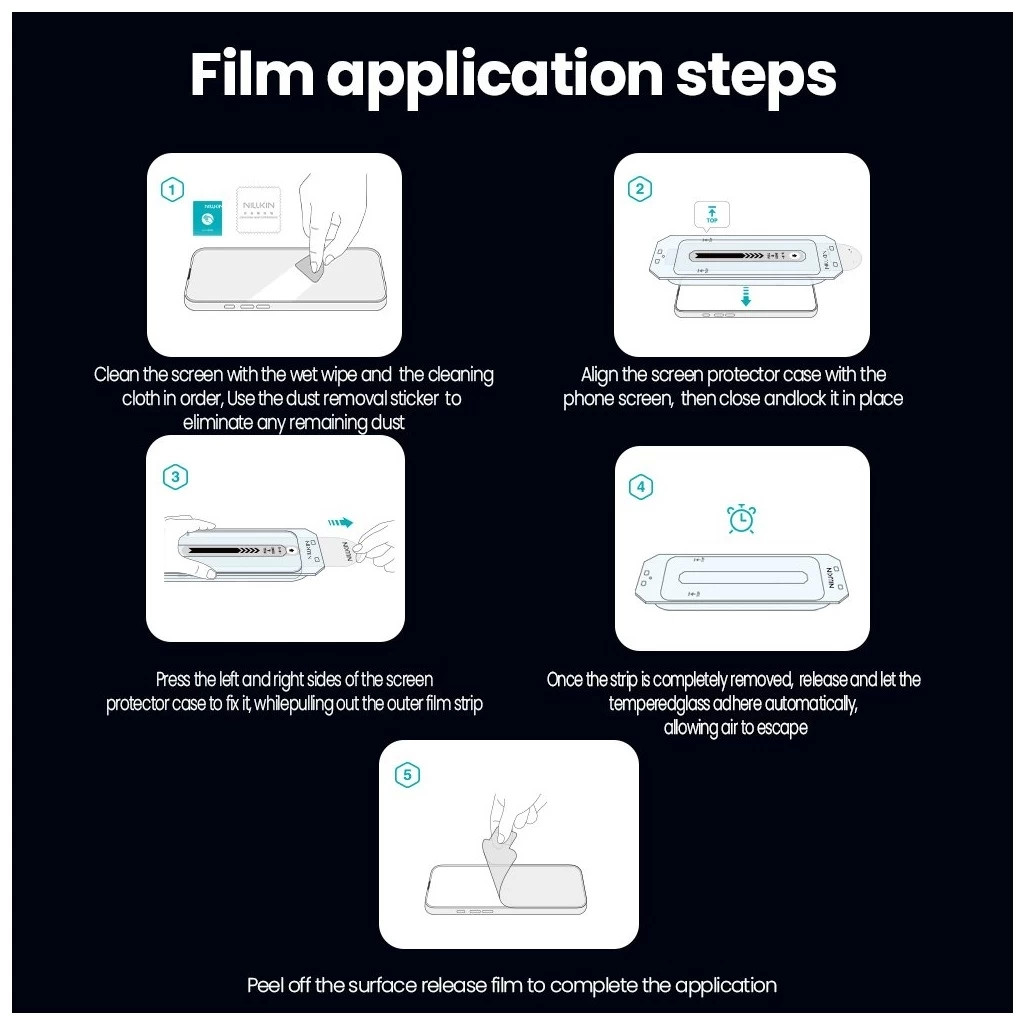 A termékhez tartozik egy speciális applikátor is, melynek köszönhetően a telepítés rendkívül egyszerű és gyors, lehetővé téve az üveg pontos, buborékmentes elhelyezését a kijelző felületére.