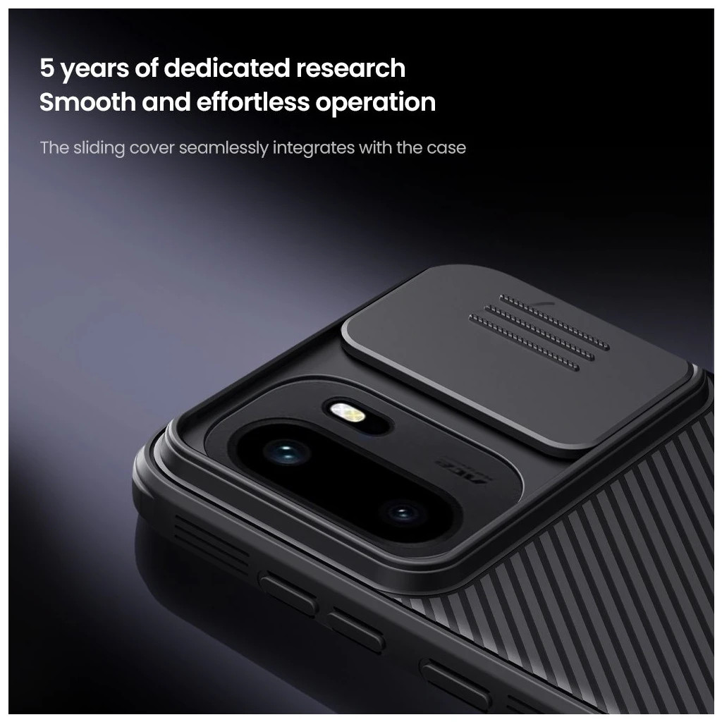 Fedezd fel a Nillkin CamShield PRO tokot, amelyet kifejezetten azoknak a felhasználóknak fejlesztettek ki, akik stílusos, ugyanakkor megbízható védelmet keresnek telefonjuk számára. Az innovatív kialakításnak köszönhetően egyszerre kínál ütés-, karc- és ujjlenyomat-álló felületet, valamint egy mozdulattal elérhető, csúsztatható kameravédelmet.